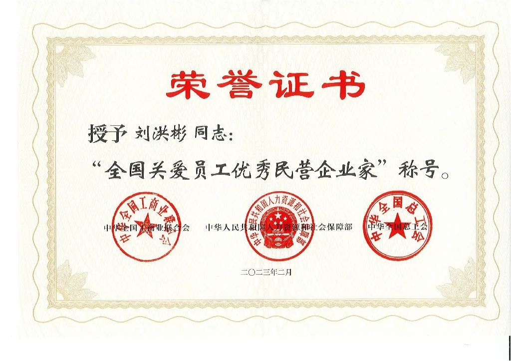喜報丨劉洪彬董事長入選全國工商聯、人社部、全國總工會編撰全國關愛員工優秀民營企業家事跡材料