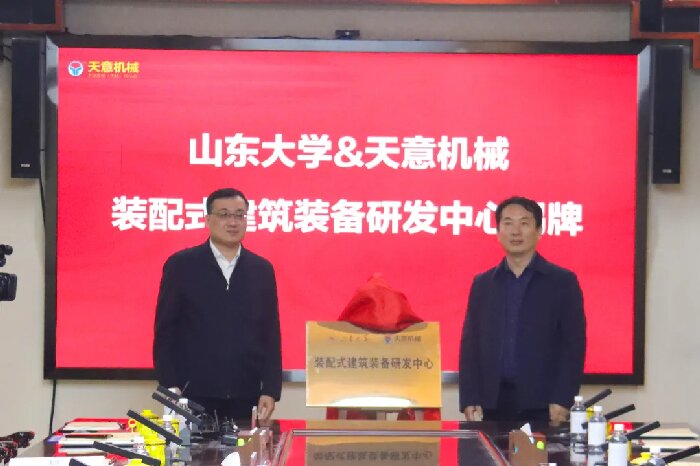 10月21日,天意機械與山東大學共同舉辦了產學研對接會暨裝配式建筑裝備研發中心的揭牌儀式。出席此次儀式的領導包括山東大學機械工程學院院長萬熠,山東大學榮聘教授張承瑞,山東大學教授姬帥,市科技局黨組成員、副局長付貴福,區科技局黨組書記、局長武云飛,以及山東天意機械股份有限公司董事長劉洪彬等。儀式由區政協副主席戴憲亭主持。