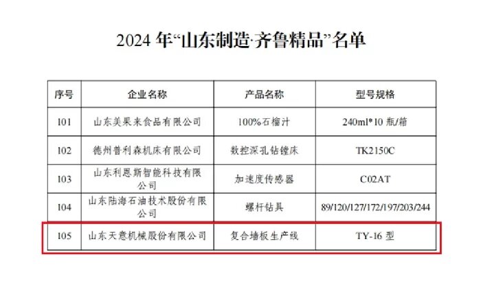天意機械裝配式建筑智能裝備榮獲2024年“山東制造·齊魯精品”。
