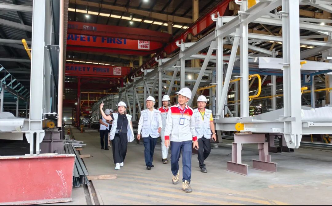 訪問期間,劉洪彬董事長一行在Dai Dung高管的陪同下,深入參觀了其現代化生產車間、研發中心和產品展示區,詳細了解越南市場在裝備制造、鋼結構及建筑工業化領域的技術應用與市場動態。雙方就東南亞市場發展趨勢、技術協同創新及潛在合作模式展開了熱烈討論。